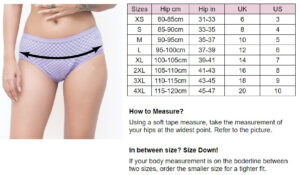 Soch period panty is available from XS to 4XL sizes.