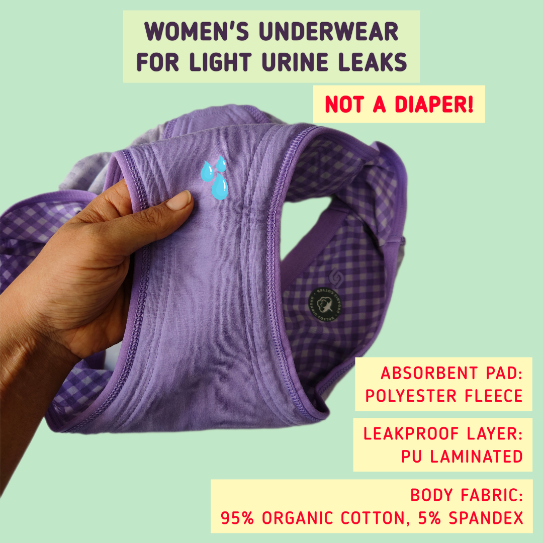 - Usage: The panty can be used for moderate urinary incontinence and urine leaks that occur while laughing, coughing or sneezing. Absorbent capacity: up to 70ml.