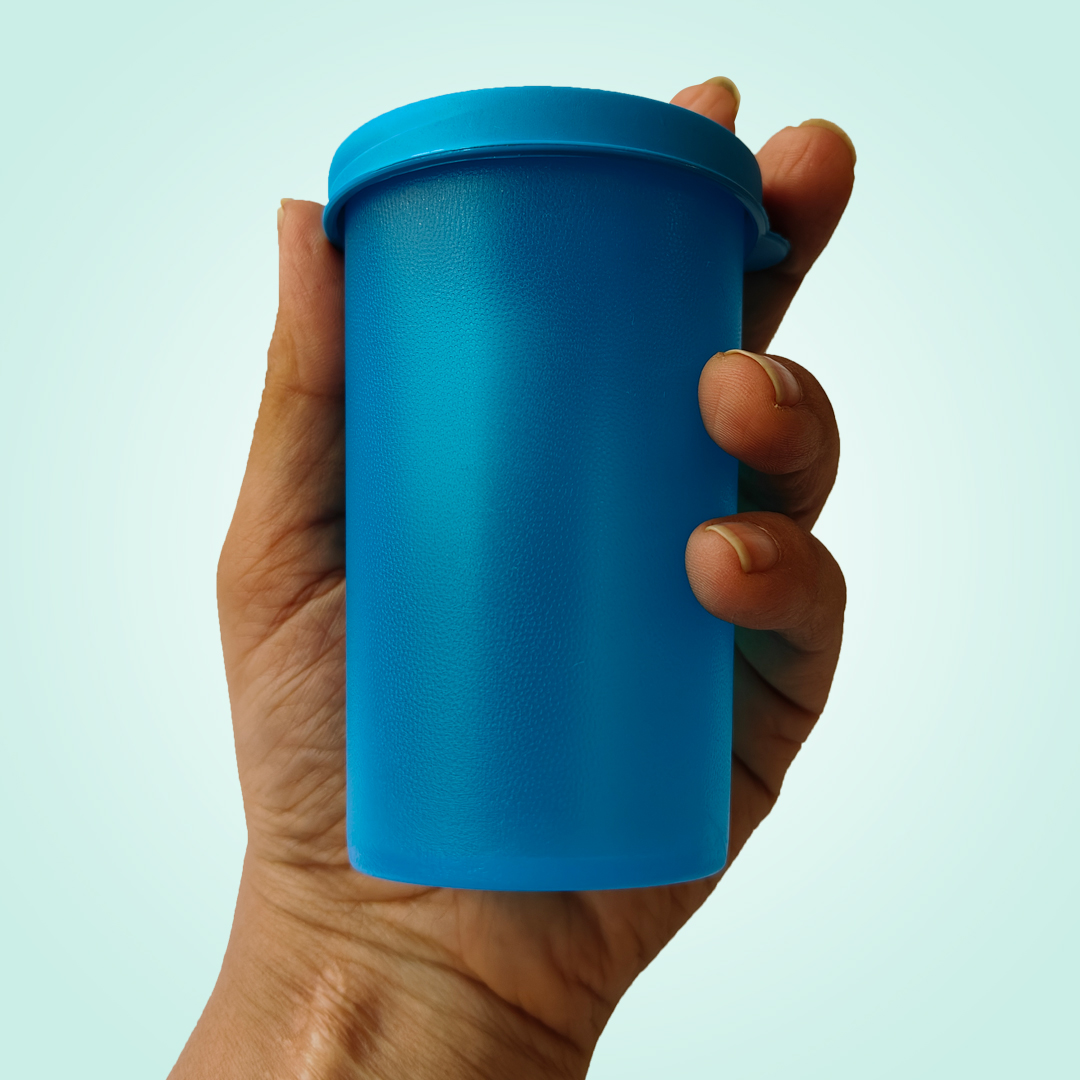 - Place the menstrual cup inside the container with stem at the bottom, fill it with water until the cup starts floating.